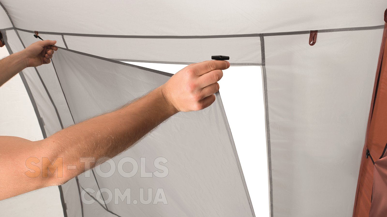 - Затемненные стены и потолок внутренней палатки уменьшают проникновение света, что способствует хорошему сну.