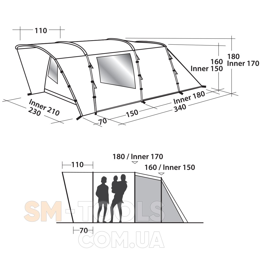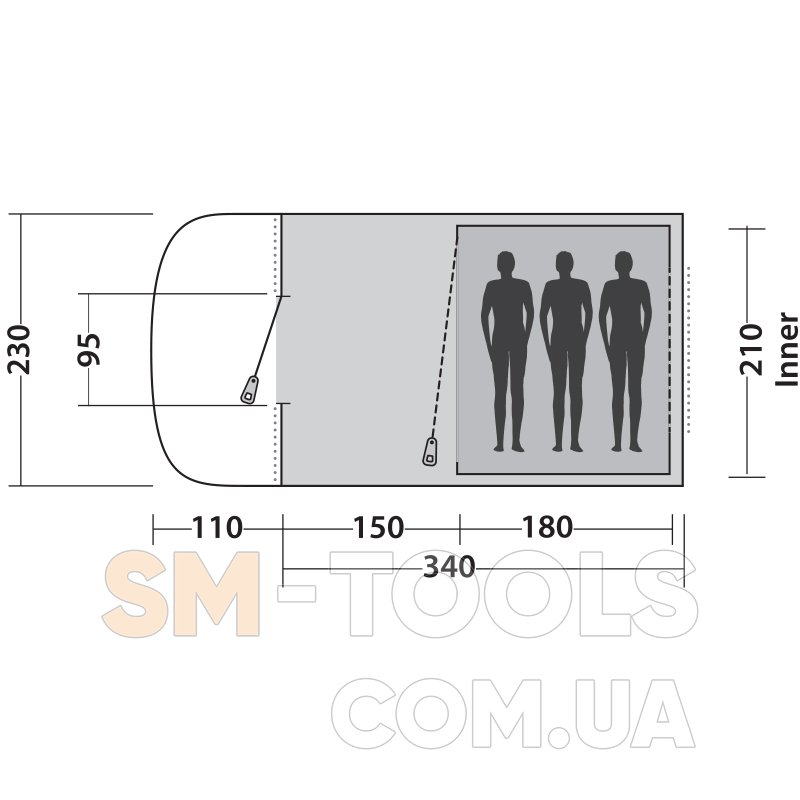 Внутренняя палатка (Д х Ш х В): 210 х 180 х 170 см