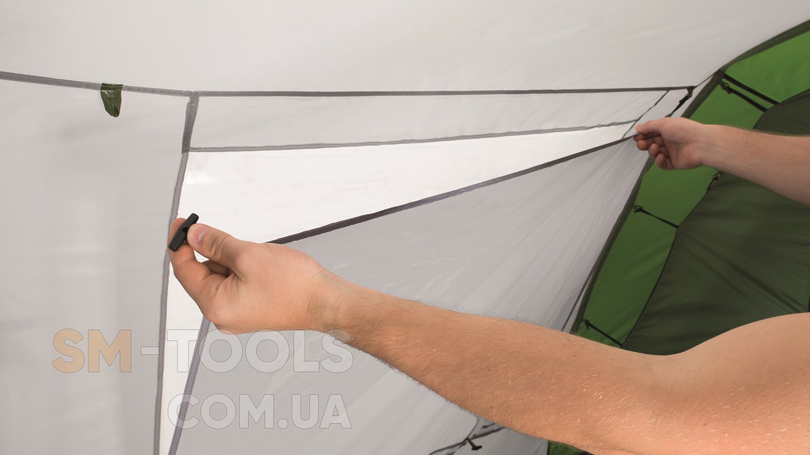 - Фиксаторы надежно удерживают оттяжки при упаковке палатки для избежания образования узлов.