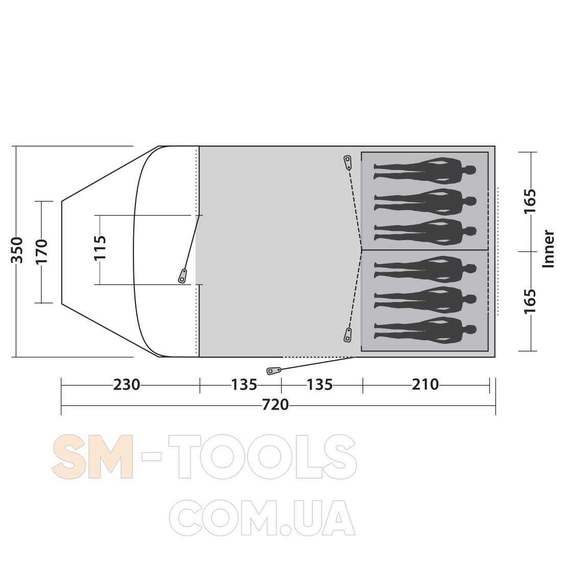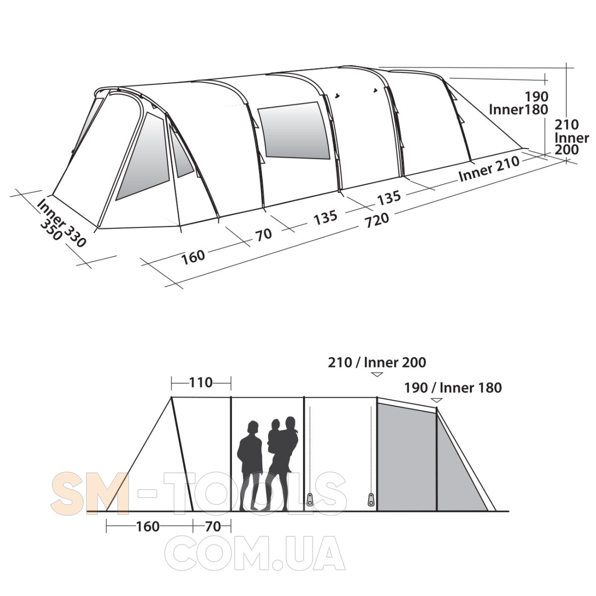 Внешний тент (Д х Ш х В): 720 х 350 х 210 см