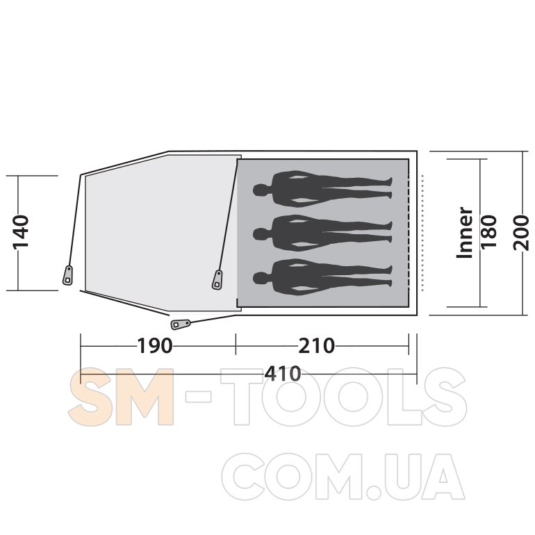 Внешний тент (Д х Ш х В): 410 х 200 х 120 см