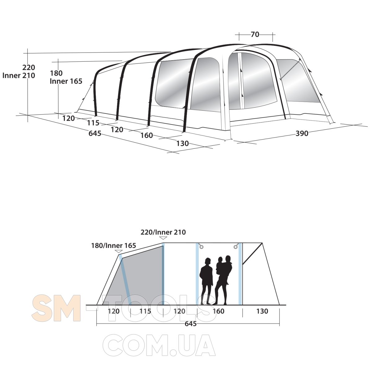 Внутренняя палатка (Д х Ш х В): 215 х 360 х 210 см