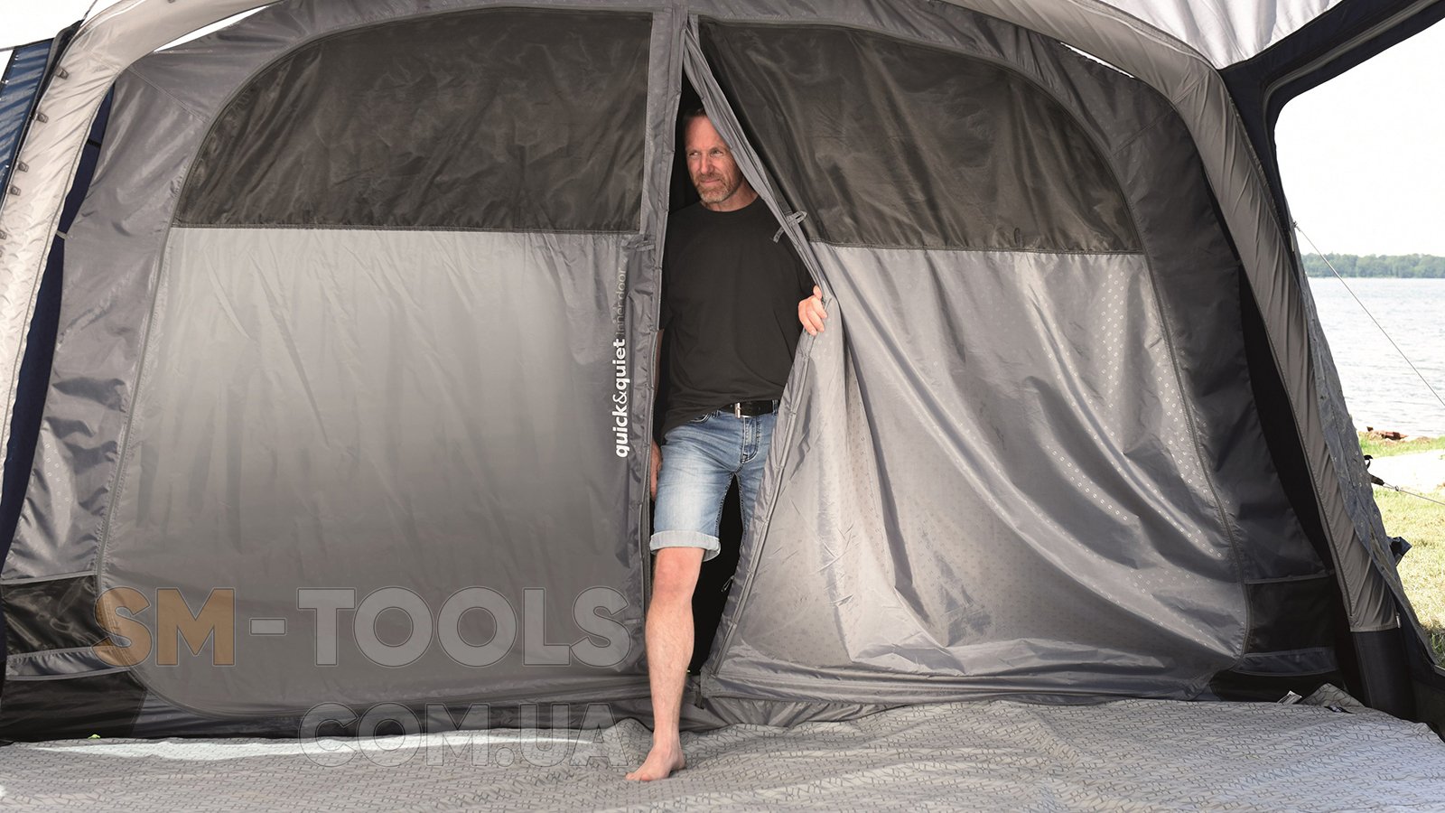 - Outwell Easy Access System with mesh - главная дверь с анти-москитной сеткой скручивается в одну сторону, а пол палатки находится заподлицо с землей для безопасного и легкого доступа.