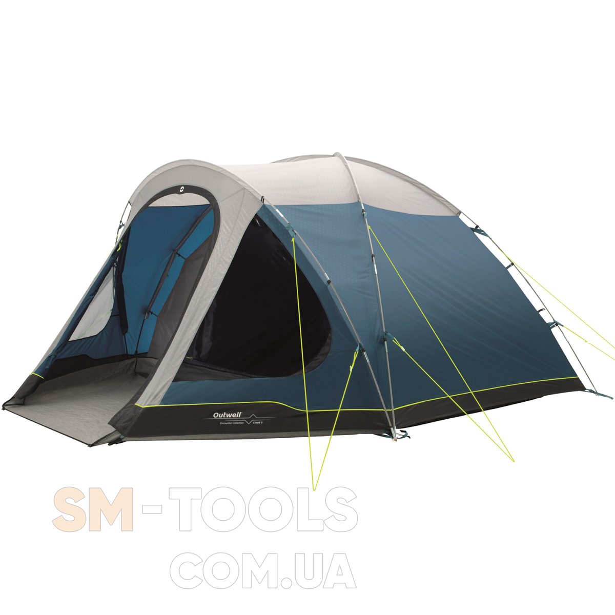 Outwell Cloud 5 - пятиместная купольная палатка с двумя противоположными входами и затемненной спальней. Фронтальная часть палатки с тонированными окнами создает пространство для хранения вещей. Съемный пол тамбура может использоваться, когда это необходимо, и легко снимается в случае уборки. Вентиляционные отсеки в верхней части палатки обеспечивают приток свежего воздуха, а также избавляют от образования конденсата. Анти-москитные сетки на верхних частях дверей спальни надежно защищают от насекомых. Outwell Cloud 5 идеально подходит для отдыха с семьей на выходных.