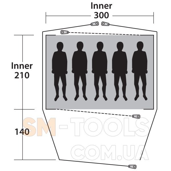 Внутренняя палатка (Д х Ш х В): 210 х 300 х 175 см