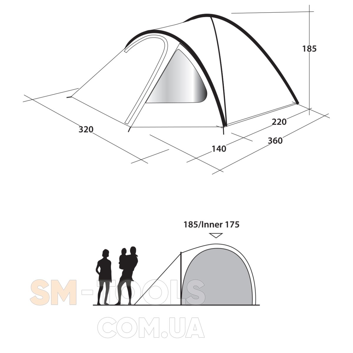 Внешний тент (Д х Ш х В): 360 х 320 х 185 см