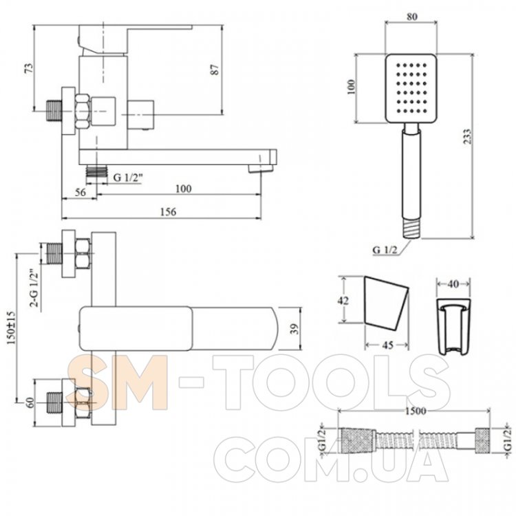 Форма ручной лейки квадратная
