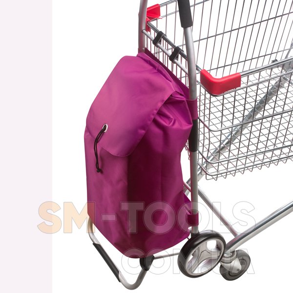 - Сумка-тележка оснащена двумя крюками для крепления на стандартной тележки для продуктов.
