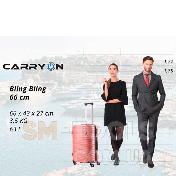 Коллекция Bling Bling бренда CarryOn объединяет в себе лучшие материалы с модным дизайном. Глянцевая поверхность чемодана восхищает своим блеском и красотой. Корпус чемодана выполнен из высокопрочного, комбинированного материала - поликарбоната (PС) и ABS-пластика.