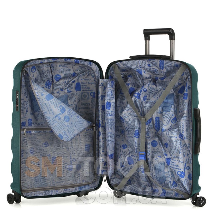 Чемоданы премиальной коллекции Air от Gabol выполнены из высокотехнологичного комбинированного материала - Polycarbonate / Aluminium fiber. Этот легкий, эластичный и в то же время прочный материал. Благодаря своим свойствам, материал устойчив к деформациям (после деформации принимает прежнюю форму), не растрескивается на морозе, и практически без видимых повреждений переносит удары и механические воздействия, что очень важно для чемоданов, перевозимых в багажных отделениях. Внутренний объем чемодана имеет ремни для фиксации вещей, а так же дополнительные карманы на молниях для мелких аксессуаров.