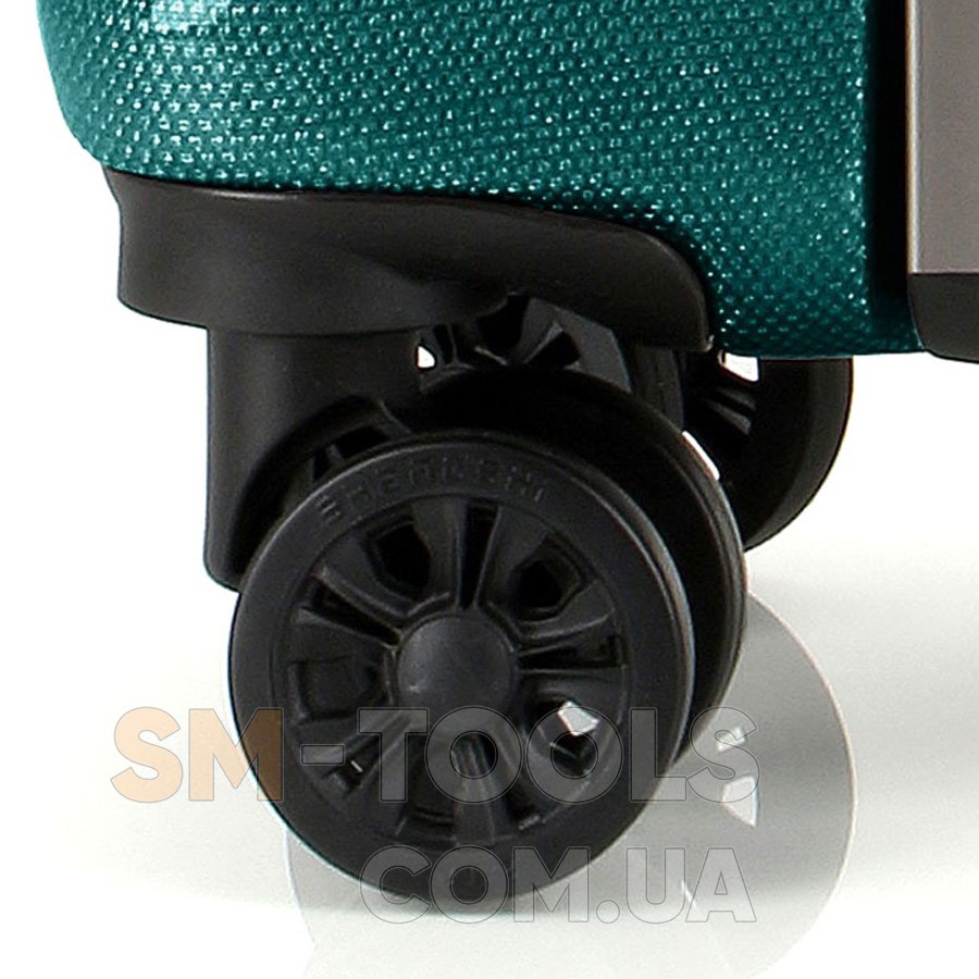 Чемодан оснащен четырьмя полноповоротными, спаренными колесами с возможностью независимого разворота каждого колеса на 360°. Системой предусмотрено равномерное перераспределения нагрузки на каждое колесо, что в свою очередь способствует плавному качению и маневренности чемодана, прилагая при этом минимум усилий.