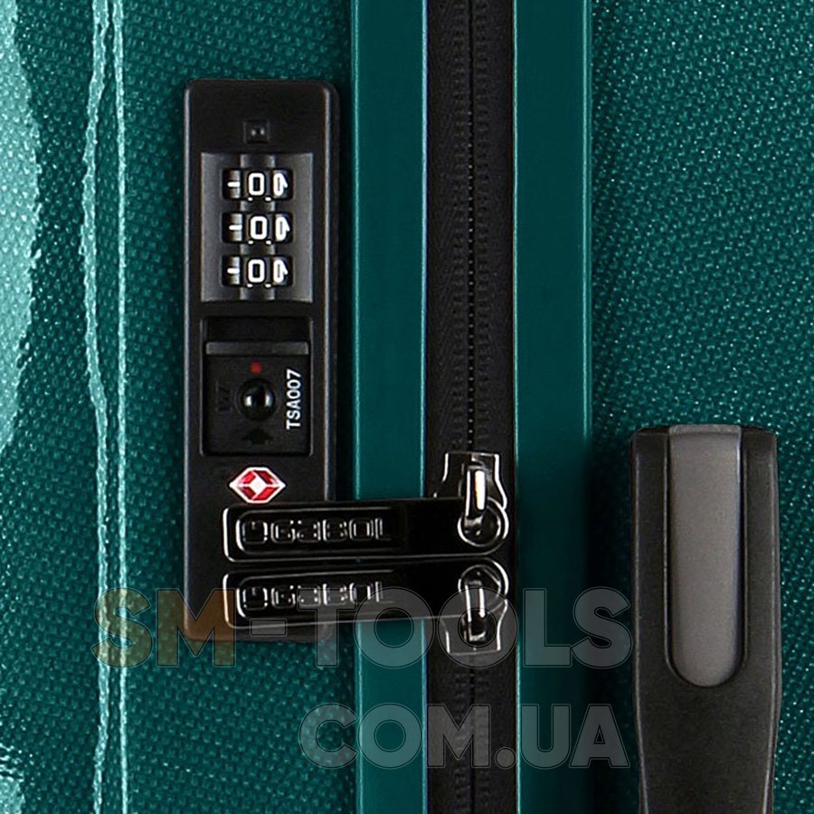 Чемодан оборудован фирменным кодовым замком с функцией таможенного досмотра TSA (Transportation Security Administration - Администрация по безопасности на транспорте). Таможенные службы совместно с Американской Ассоциацией по безопасности на транспорте (Transportation Security Administration или, сокращенно, TSA) получили абсолютное право, в целях безопасности, досматривать любой чемодан на колесах или сумку, показавшуюся им подозрительной. Агенты по безопасности на транспорте снабжены специальными TSA ключами, за которые они несут персональную ответственность. Благодаря наличию в замке функции TSA после досмотра ваши замки останутся целыми и невредимыми в отличие от багажа без функции TSA.