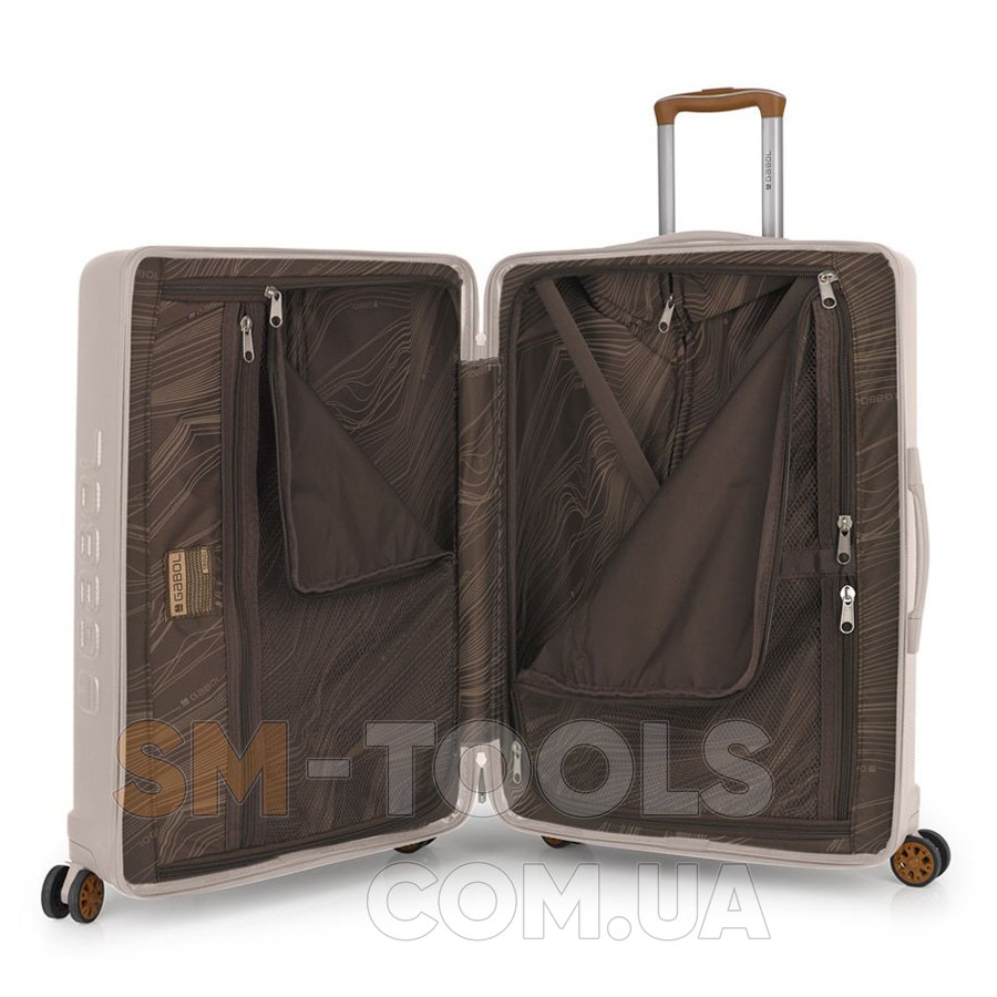 - Чемодан разделен двумя перегородками на молниях на два основных отделения. Перегородки имеет сетчатые карманы на молниях (один большой карман и два среднего размера)
