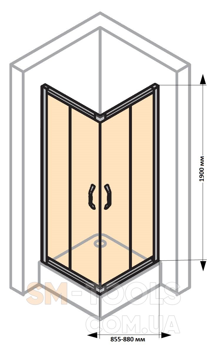 Установочный размер по поддону: 885-910 мм