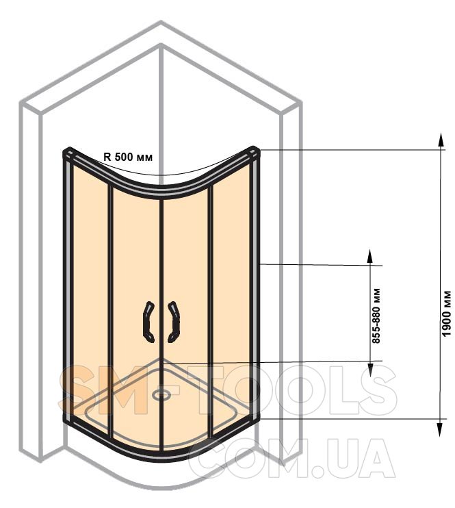 Раздвижная дверь 1/4 круга (радиус 500 мм)