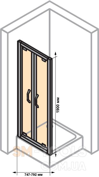 Диапазон регулирования распашной двери для компенсации неровностей стен ниша -30/+20 мм, боковая стенка -15/+30 мм