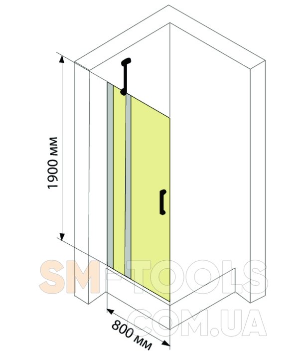 Душевая распашная дверь универсальная: ее можно устанавливать как справа так и слева.