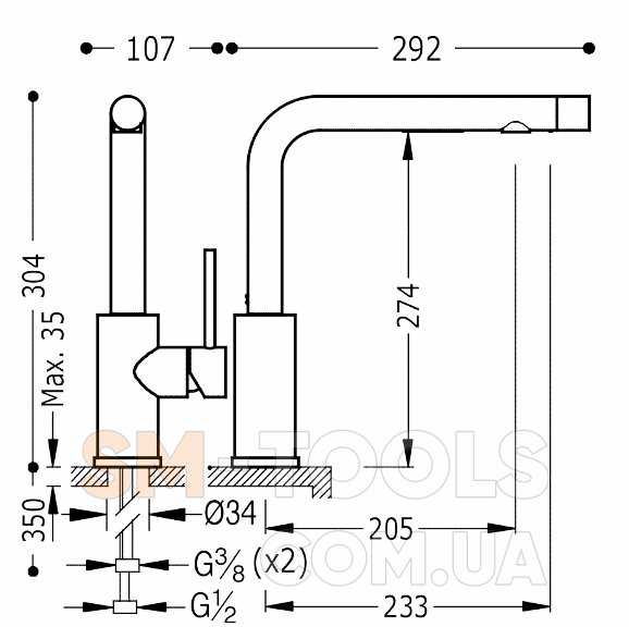 - тип установки - наружный врезной монтаж на 1 отверстие