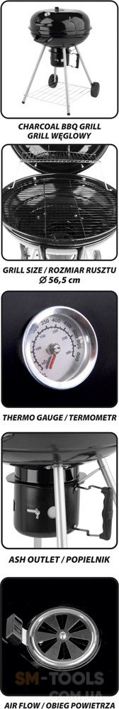 Круглый угольный садовый гриль с крышкой, диаметр 57 см.