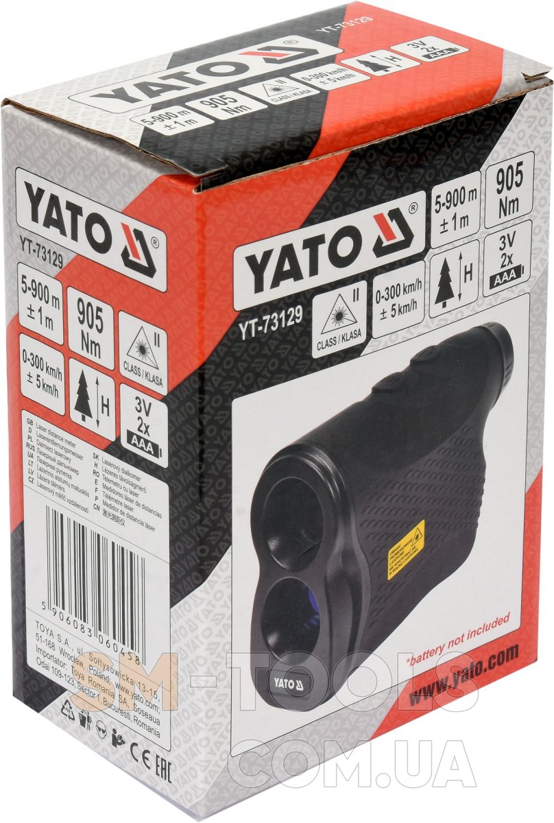 Современный лазерный дальномер YATO YT-73129 используется для измерения расстояний до 900 м. Он также имеет функцию измерения высоты, угла и скорости. Особенностью прибора является большой диапазон измерений. Измерение производится с помощью лазерного луча с длиной волны вне видимого диапазона. Прибор оснащен телескопом с дисплеем, который позволяет произвести простое и быстрое измерение. Рекомендуется для туристов, спортсменов, охотников, любителей гольфа.