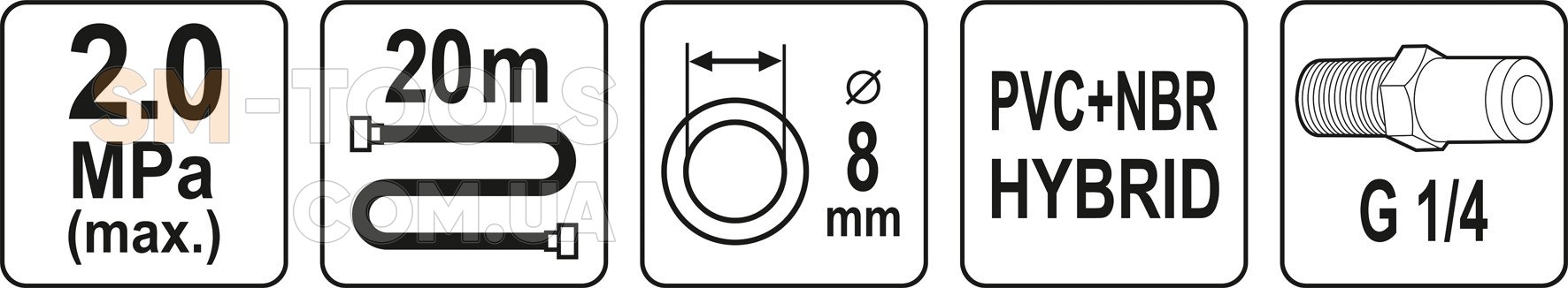 Характеристики Шланг пневматический гибридный YATO YT-24234 (20 м):
