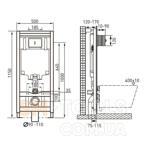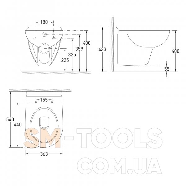 - Габариты унитаза (ВхШхГ) 40 x 36.3 х 54 см