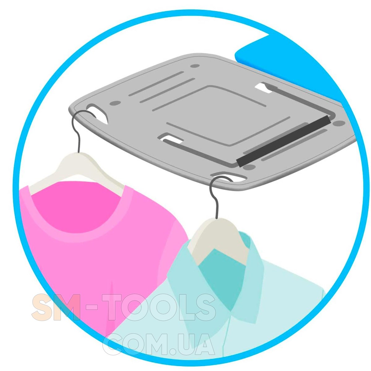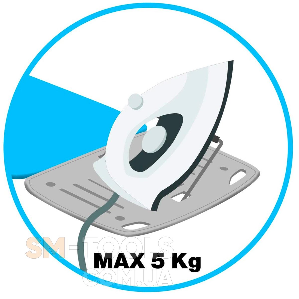 Гладильная поверхность доски имеет сквозную перфорацию по типу сетки. Благодаря такой конструкции, пар из-под утюга проходит сквозь саму доску, тем самым предотвращается скапливание конденсата под чехлом. Закругленное окончание доски позволяет выгладить труднодоступные места в рубашках или блузах. Чехол съемный, по мере использования его всегда можно постирать или заменить на новый. Гладильная доска плавно и без особого усилия регулируется по высоте для максимально комфортного использования. На основания ножек одеты колпачки, предохраняющие доску от скольжения. В сложенном виде доска занимает минимум места, что позволяет удобно хранить ее в помещении.