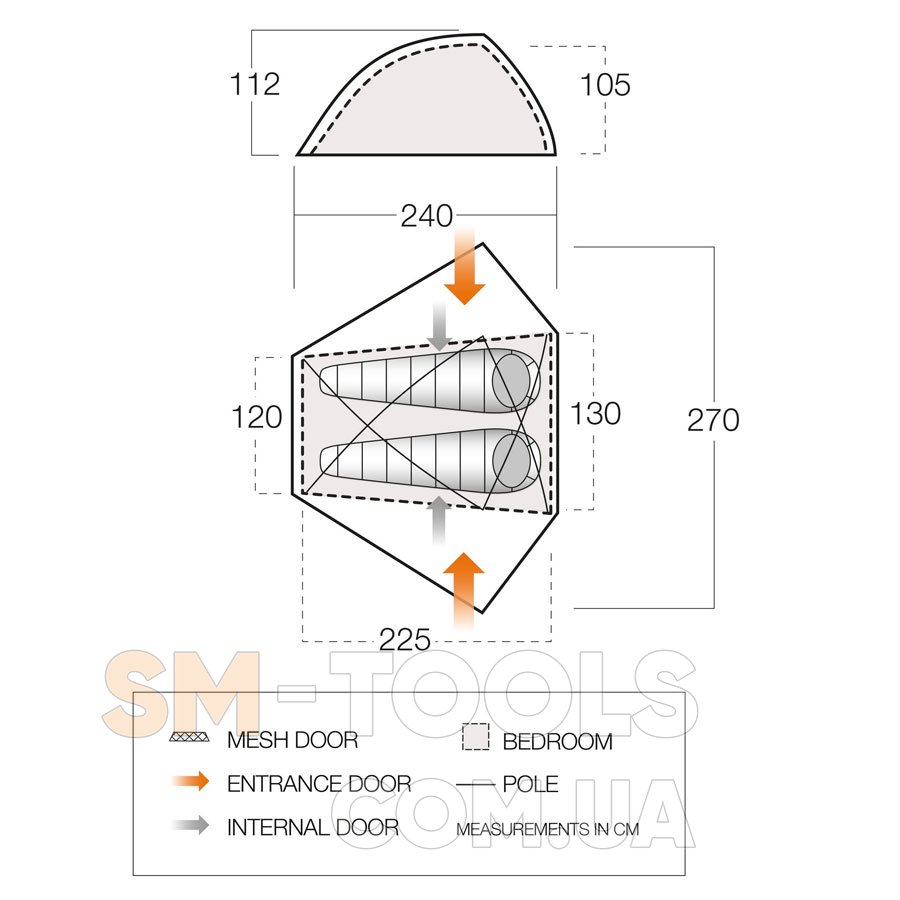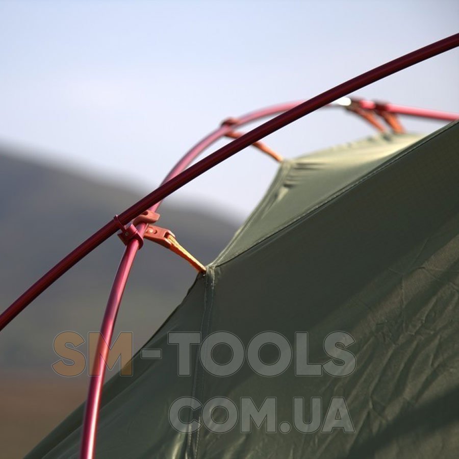 - Для облегчения, быстрой и правильной установки внутренней палатки, по отношению к внешней, применена цветовая маркировка фастексов и опорных дуг.