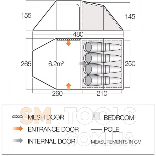 Внешняя палатка (ДхШхВ), мм: 4800 х 2650 х 1550