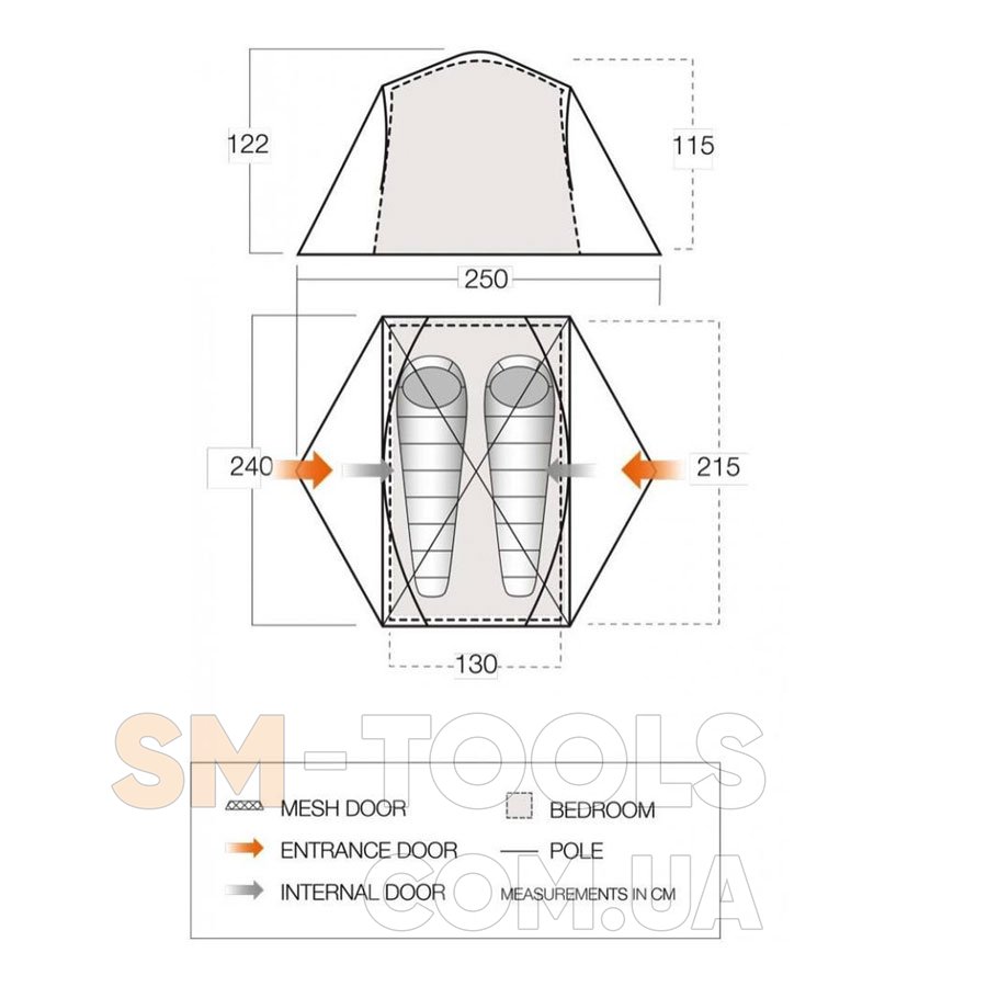 Внешняя палатка (ДхШхВ), мм: 2400 х 2500 х 1220