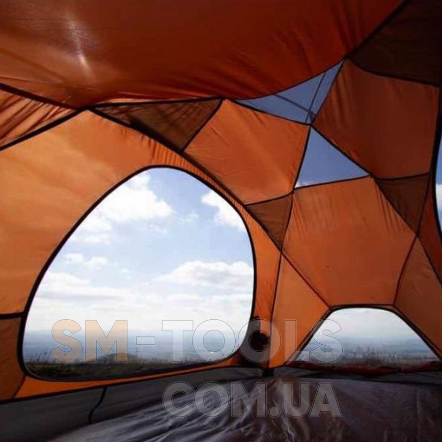 - Внешний тент имеет специальную фурнитуру по периметру в районе дверей, что позволяет использовать треккинговые палки в виде стоек для создания дополнительного навеса над входом