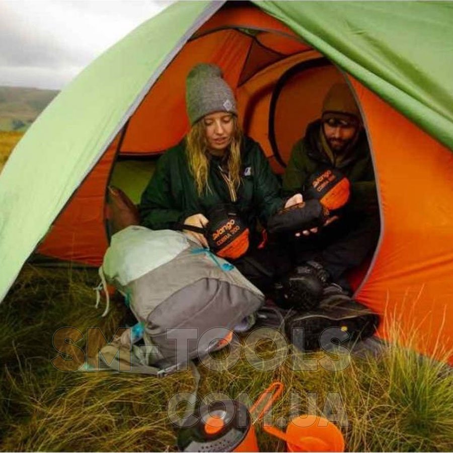 При создании данной модели ставилась задача создать просторную палатку, подходящую для различных приключений в любом уголке земли, невзирая на климатические условия, будь-то влажный горный альпийский климат или сухой и жаркий климат пустыни. Походная палатка для двоих Vango Tryfan 200 Pamir Green прекрасный вариант и для более сложных пеших походов и для поездок загород на выходные, велотуров и фестивалей под открытым небом. Особая уникальная конструкция алюминиевого каркаса из четырех дуг улучшает стабильность, позволяет создать большие вентиляционные окна, а главное увеличивает высоту и внутренний простор. Увеличенное внутреннее пространство, дышащий материал внутренней палатки с "О"-образными входами и продуманной системой вентиляции, обеспечит комфортный сон благодаря притоку свежего воздуха и отсутствию конденсата. В сухую жаркую погоду внутреннюю палатку возможно установить без внешнего тента. В дождливую и ветряную погоду будет оценена достаточная степень водозащиты тента и пола, а также возможность превратить двери тента в навес, использовав в качестве опор треккинговые палки. Tryfan 200 легко и просто устанавливается за 12 минут одним человеком, а общий вес 3.6 кг и компактная компрессионная сумка-чехол позволяет размещать ее в рюкзак среднего объема. Данная модель палатки прошла испытания на пожароустойчивость материалов и протестирована погодными факторами согласно Международному стандарту ISO5912 и Европейскому стандарту безопасности EN5912.
