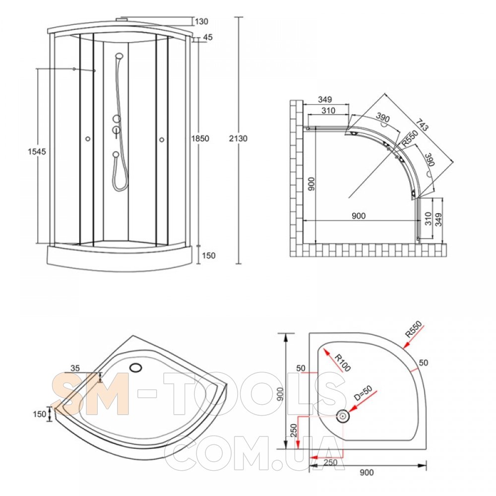 Душевой бокс Lidz Tani SB90x90.SAT.LOW.GR (LTSB9090SATLOWGR)