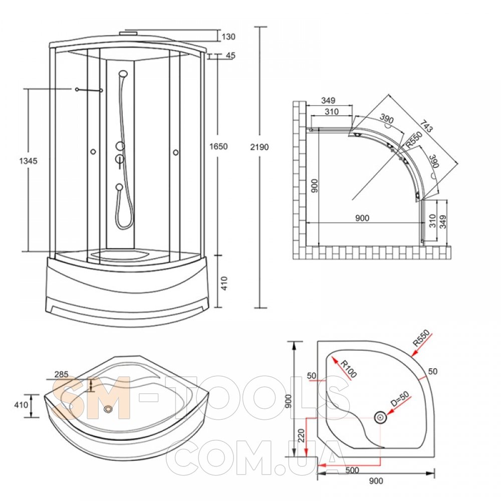 Душевой бокс Lidz Tani SB90x90.SAT.HIGH.GR (LTSB9090SATHIGHGR)