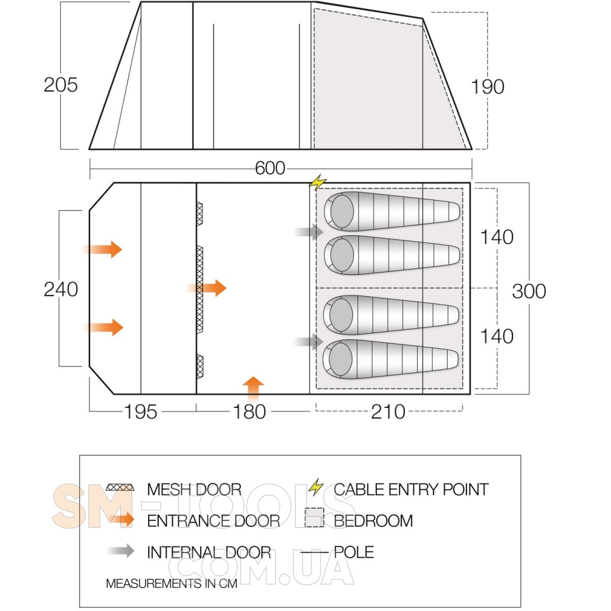 Внешняя палатка (Д х Ш х В): 600 х 300 х 205 см