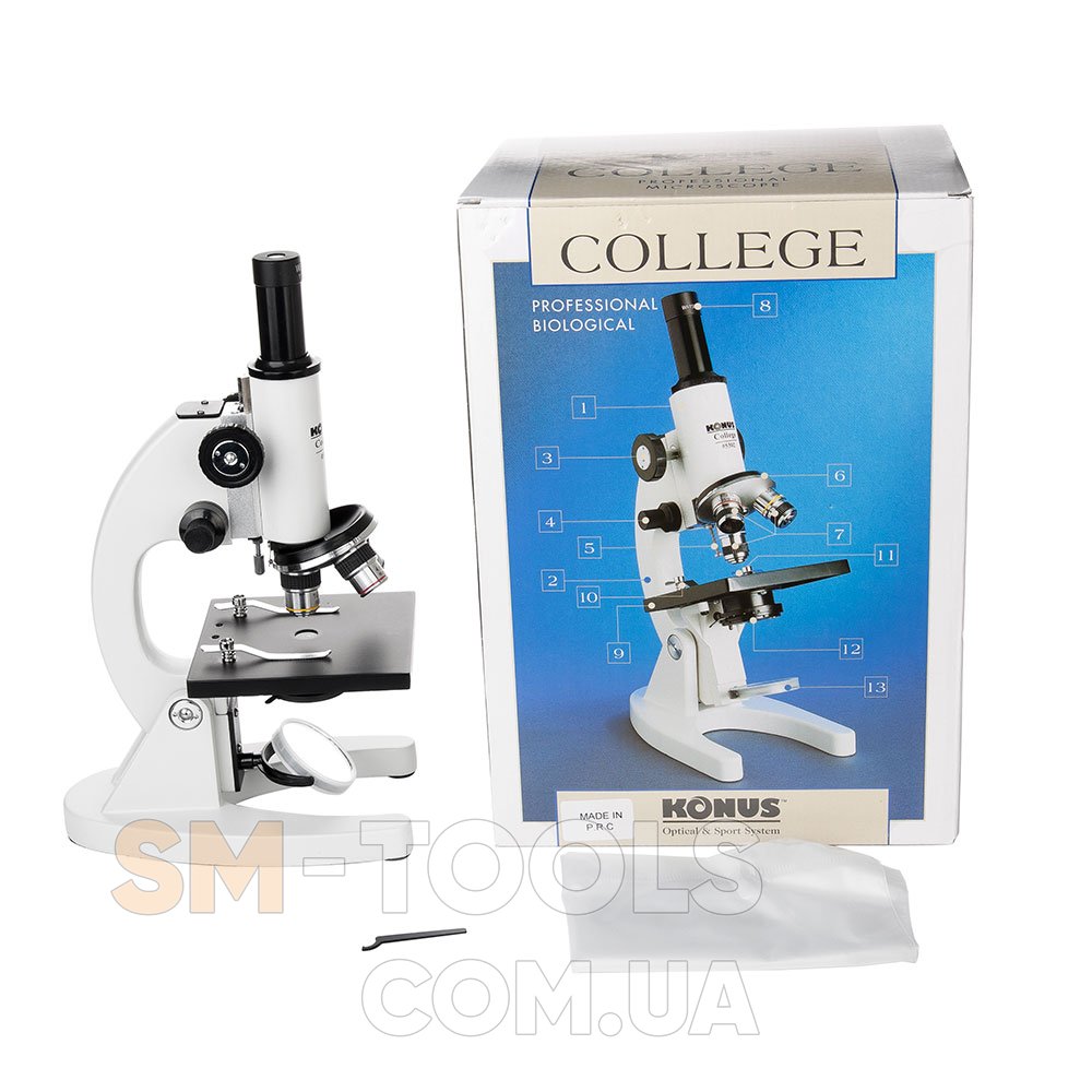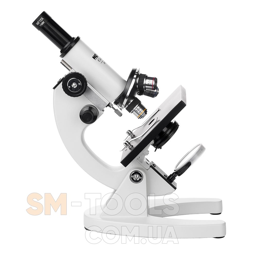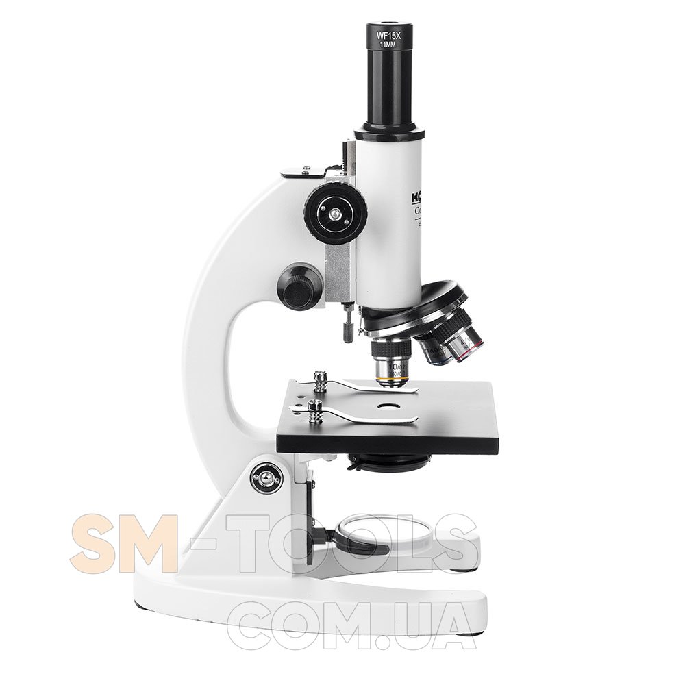 Монокулярный 3-х объективный световой микроскоп. Максимальное увеличение 600X. Фокусное расстояние 160 мм.