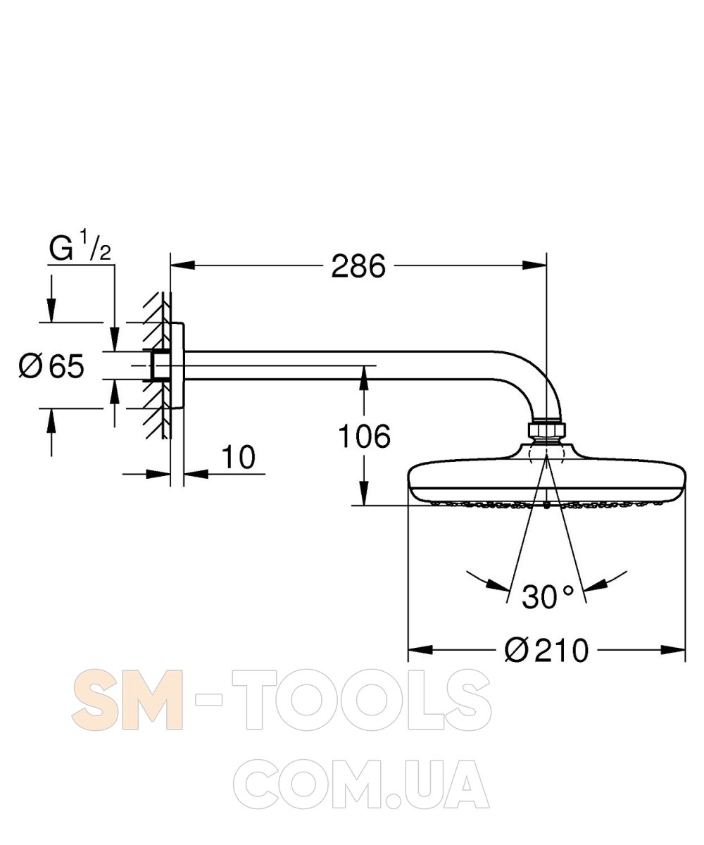 В набор также входит душевой кронштейн длиной 286 мм, который легко установить.