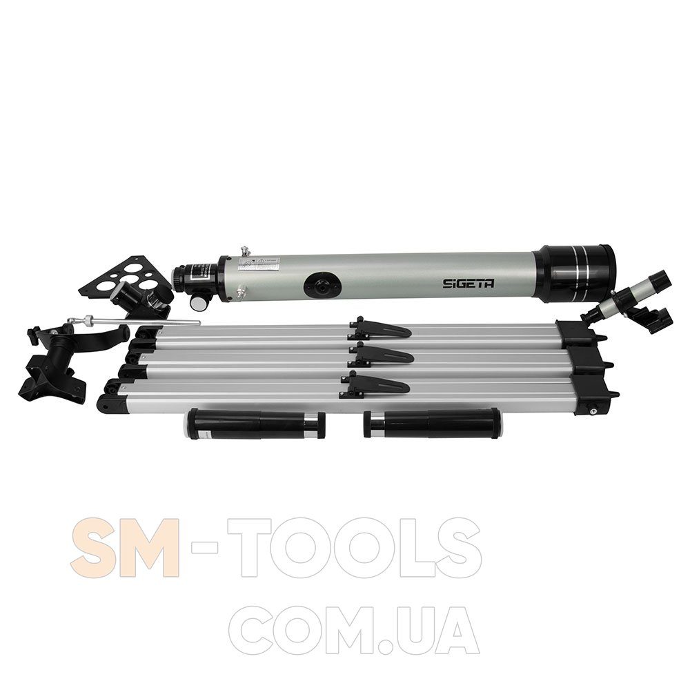 Sigeta Dorado 70/700 - линзовый телескоп с апертурой 70мм и фокусным расстоянием 700мм. Установлен на азимутальную монтировку, алюминиевая тренога регулируется по высоте и имеет полочку под аксессуары. Реечный фокусер 1.25", позволяет использовать любой окуляр стандарта 1.25". Телескоп снабжён удобным оптическим искателем 5х24 для быстрого и точного наведения на объекты. Телескоп с диагональным зеркалом дает зеркально изображение.
