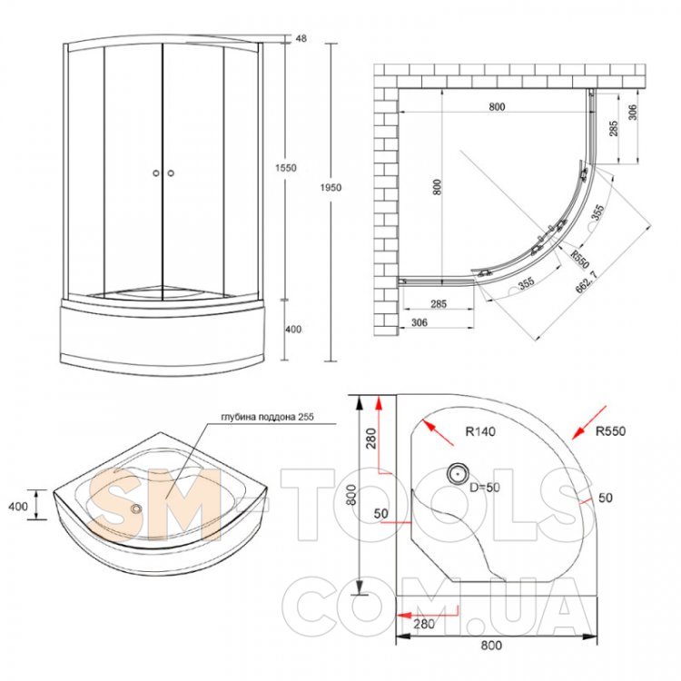 Душевая кабина Lidz Wieza SC80x80.SAT.HIGH.L Linie (LWISC8080SATHIGHL)
