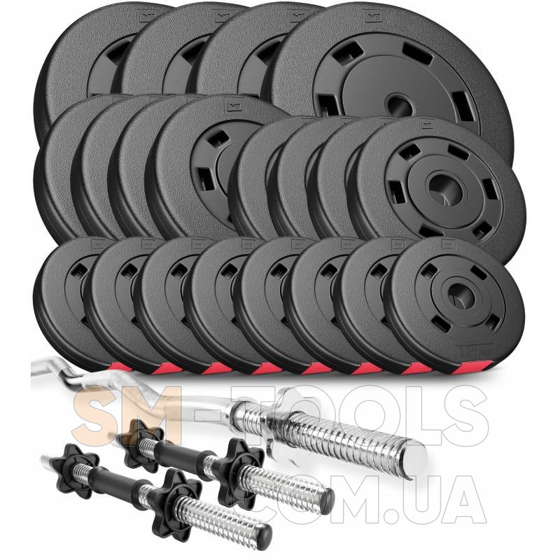 Набор Premium 87 кг предназначен для силовых тренировок и занятий бодибилдингом. Набор состоит из битумных дисков покрытых прочным пластиком, один стальной изогнутый гриф и два пластиковых грифа для гантелей. Тренировки с данным набором проходят комфортно и безопасно.