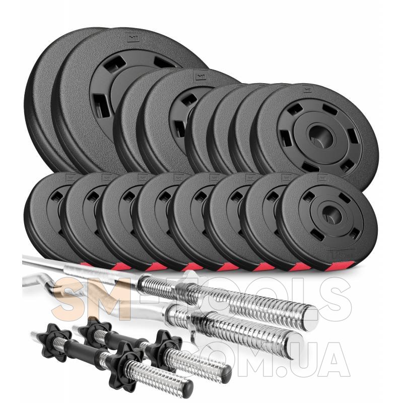 Набор Premium 64 кг предназначен для силовых тренировок и занятий бодибилдингом. Набор состоит из битумных дисков покрытых прочным пластиком, один прямой гриф и два пластиковых грифа для гантелей. Тренировки с данным набором проходят комфортно и безопасно.