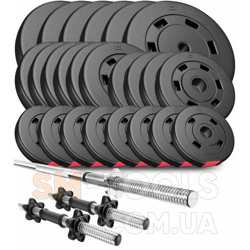 Набор Premium 120 кг предназначен для силовых тренировок и занятий бодибилдингом. Набор состоит из битумных дисков покрытых прочным пластиком, один прямой гриф и два пластиковых грифа для гантелей. Тренировки с данным набором проходят комфортно и безопасно.