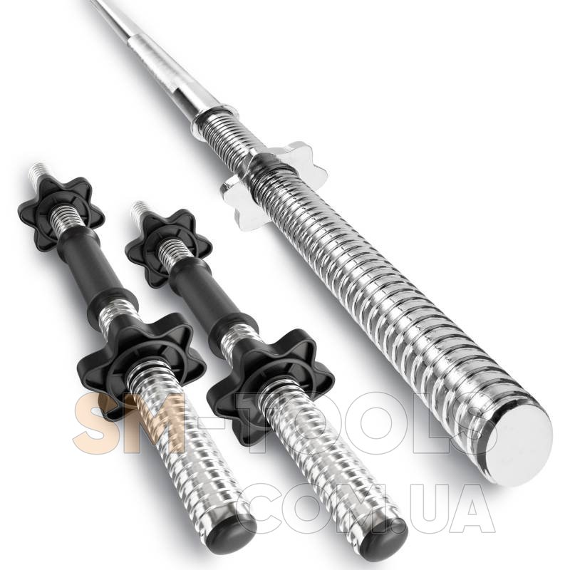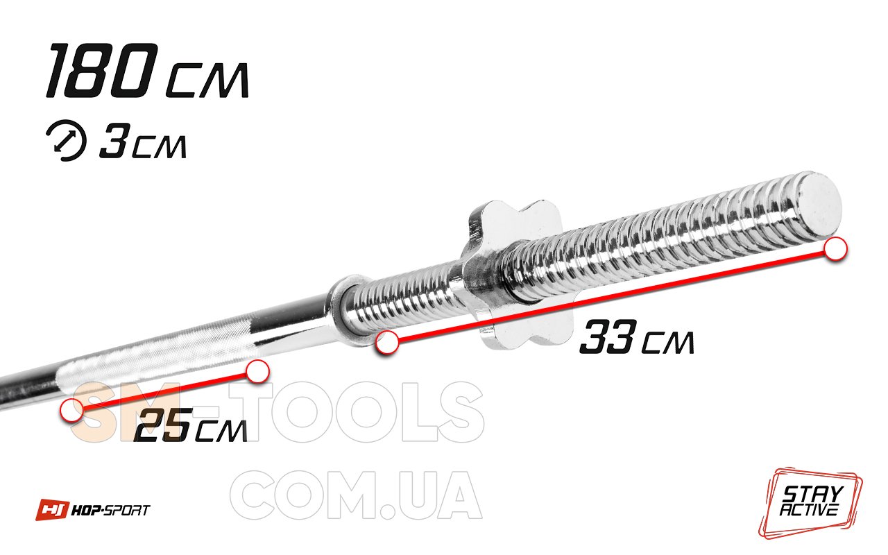 - Все грифы Hop-Sport изготовлены из высококачественной хромированной стали. Они имеют рифленую поверхность для захвата, которая повышает комфорт при выполнении упражнений, а гаечные фиксаторы гарантируют безопасную тренировку.