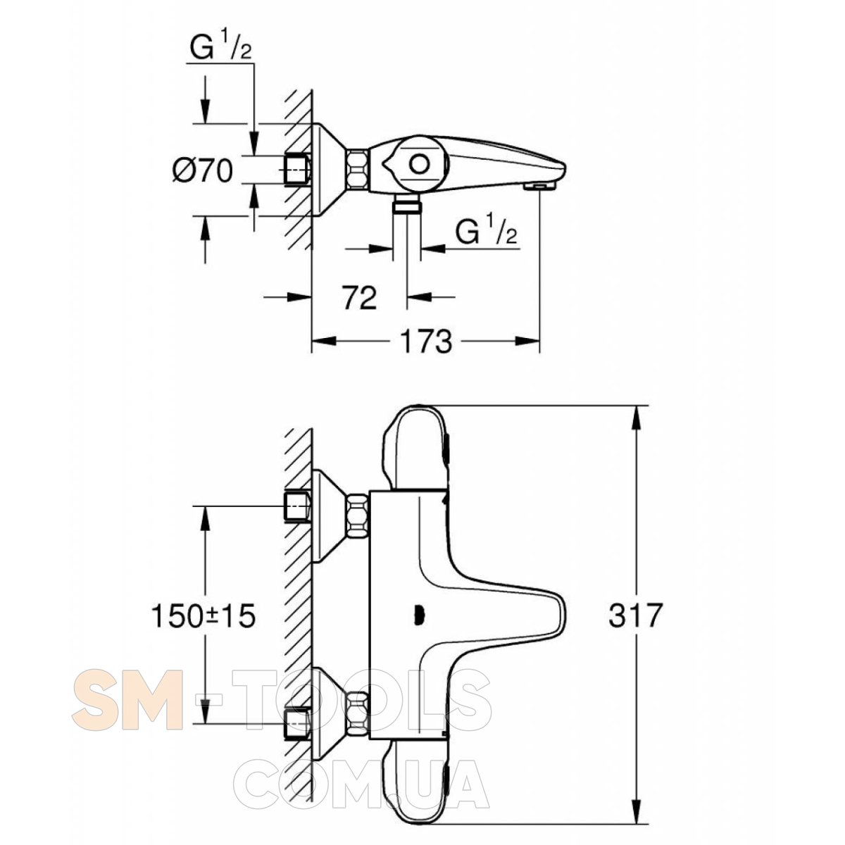 Тип монтажа смесителя: На стену