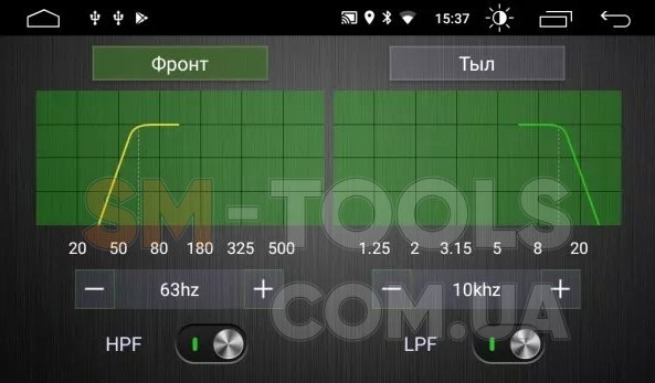 Тонкая настройка баса. По сути, басовый параметрический эквалайзер. Выберите центральную частоту и коэффициент её усиления. Добавьте баса там, где это необходимо. Функция «Гармоника» автоматически восстанавливает гармоники низких частот, потерянные при сжатии аудиофайлов. Вы поймете это, сравнив звучание DTA магнитолы с обычным автомобильным ресивером, на заводских («нулевых») аудио настройках.