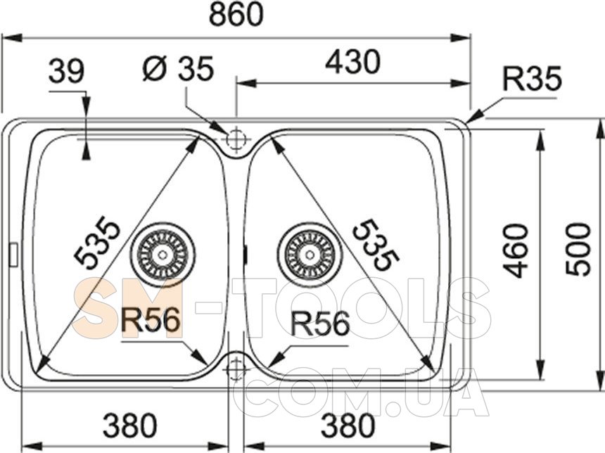 Размеры основной чаши (ДхШхГ) 50x35.9x21 см x2