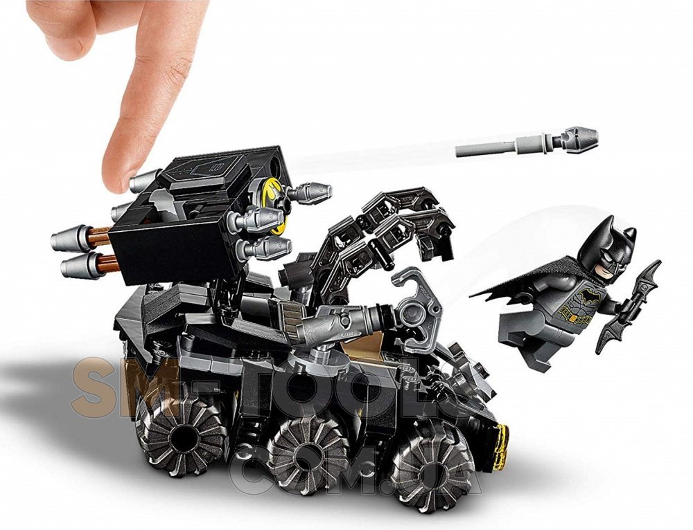 Быстро! Превратите Брюса Уэйна на Бэтмена, чтобы остановить Глиноликого, который пытается захватить пещеру Бэтмена из набора LEGO®! Проверьте беткомпьютер и поспешите в бет-танк. Примените против монстра маневренные ракеты, гарпуны и шиповые шутеры, которыми оснащены бет-танк. Объединитесь с Бэтвумен, чтобы высвободить Робина из огромных рук Глиноликого. Однако остерегайтесь - Двуликий пытается освободить из тюрьмы Женщину-Кошку. Нужно схватить этих нарушителей, пока они не уничтожили пещеру Бэтмена! Невероятная пещера Бэтмена LEGO® для устройства сюжетных игр на тему борьбы супергероев и супернегидникив!