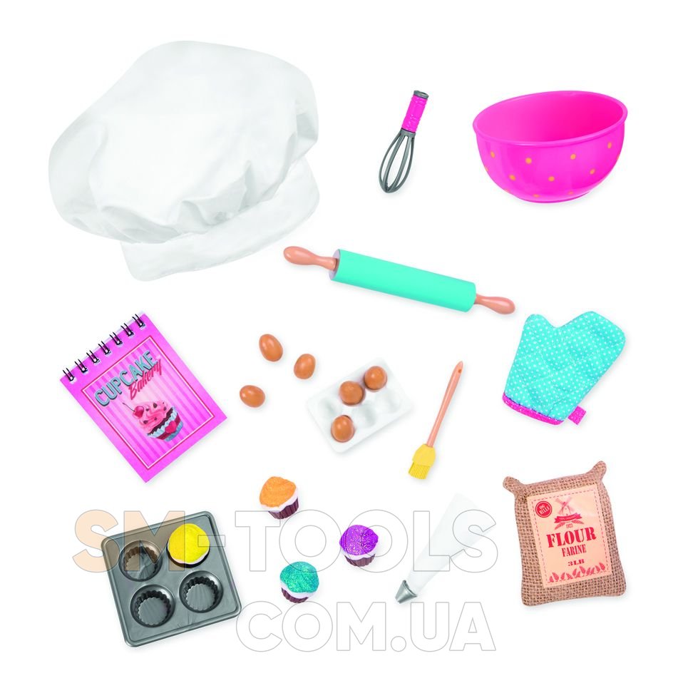 Кукла Our Generation Дженни из коллекции Deluxe Dolls готова к приготовлению вкусных десертов! Она любит печь, поэтому в наборе идет много разных аксессуаров для выпечки. Вы можете прочитать про ее приключениях в пекарне Sweet Shoppe( книга на англ.языке) и научится готовить. Игра с куклой будет помогать развивать фантазию и сюжетно-ролевую игру, привавать эстетический вкус.