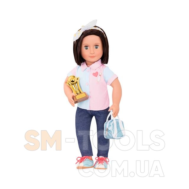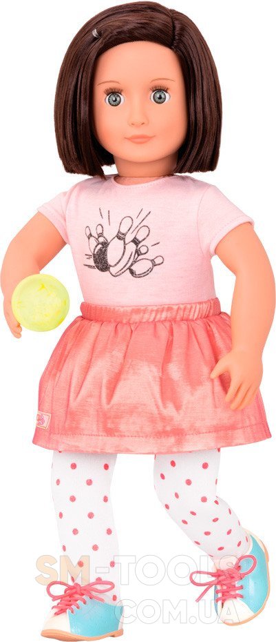 Кукла Эверли из коллекции Delux Dolls от Our Generation - улекается боулингом! Попробуй вместе с ней бросить желтый шар и выбить страйк! У нее короткие прямые темно-коричневые волосы и красивые бледно-голубые глаза. В наборе с куклой есть два комплекта одежды - трикотаж для боулинга и джинсовые леггинсы, футболку для боулинга, блестящую юбку и колготки в горошек и сборник рассказов про ее приключения «Любовь к боулингу» (на англ.языке). Придумай свою собственную историю вместе с Эверли! Игра с куклой будет помогать развивать фантазию и сюжетно-ролевую игру у детей, эстетический вкус, овладеть новыми навыками.