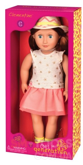 Клементина - это олицетворение спокойности, хороших манер и элегантности, она является одной из фантастических кукол Our Generation. Ее розовая юбочка прекрасно гармонирует с милым румянцем на щечках, а блуза и шляпка делают образ куклы легким и нежным. Кукла прекрасно подходит для прогулок по городу или пикнике у реки. Она веселая и забавная. Ее рыжие волосы, отлично гармонирует с голубыми глазами, не оставит малыша равнодушным. Куколка изготовлена из винила и имеет мягкое наполнение. Высота куклы 46 см. Рекомендуемый возраст: 3+.